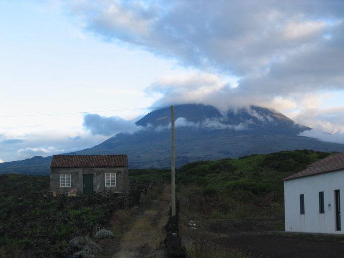 Insel Pico (Azoren) - Abendlicher Blick auf den wie meist wolkenvergangen Pico, den mit 2.351 m höchsten Berg Portugals