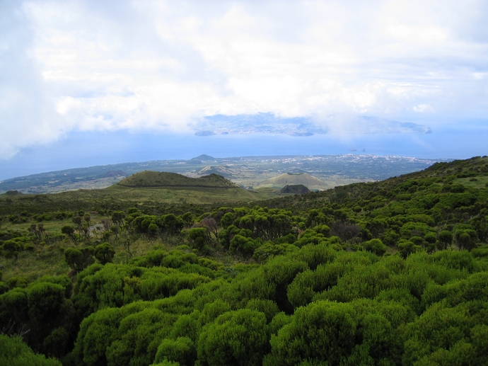 Insel Pico (Azoren) - Blick vom Pico auf die Inselhauptstadt Madalena sowie die Nachbarinsel Faial