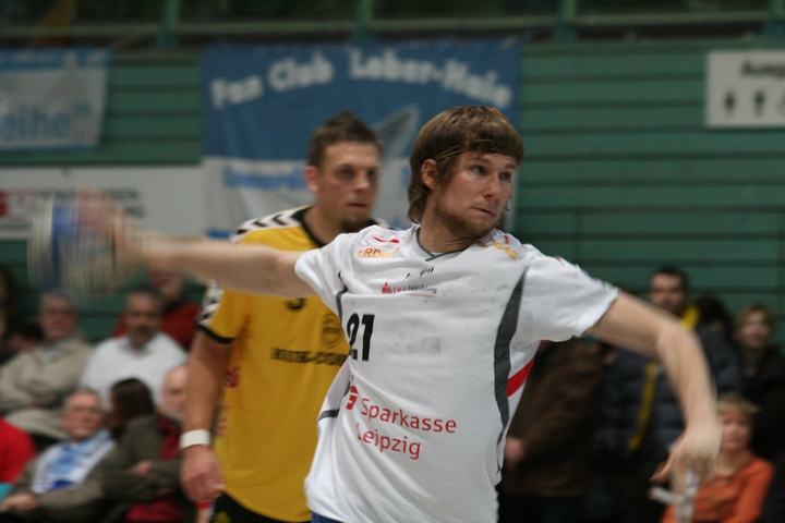 Till Riehn verwandelt in der 24. Minute den ersten Delitzscher Siebenmeter (12:12)