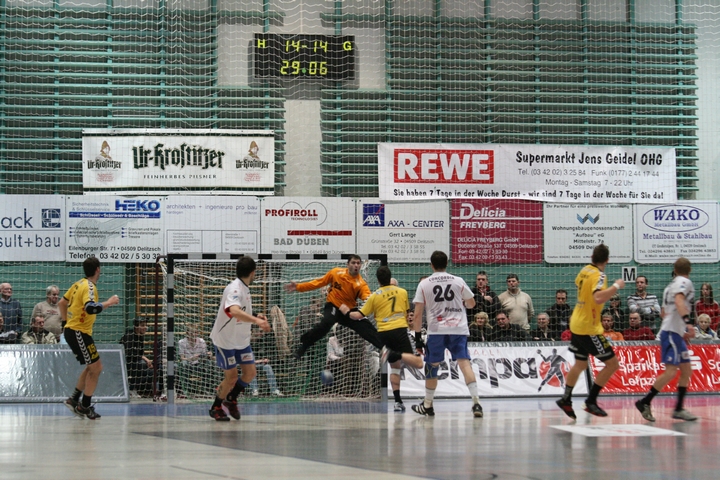 Christian Pack erzielt abermals den Führungstreffer für Coburg (14:15 = Halbzeitstand)