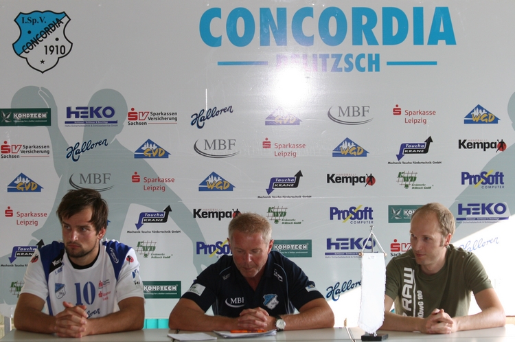 Pressekonferenz - Kapitän Thomas Oehlrich, Coach Uwe Jungandreas, Pressesprecher Sven Sauerbrey