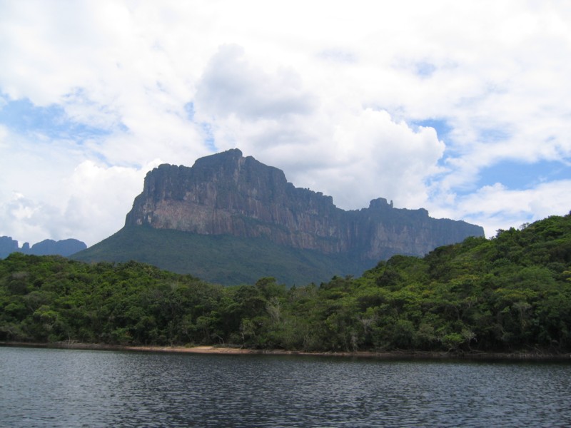 28.04.06 Canaima - Bootsfahrt auf dem Rio Carrao in Richtung Salto Angel, vorbei an riesigen Tafelbergen.