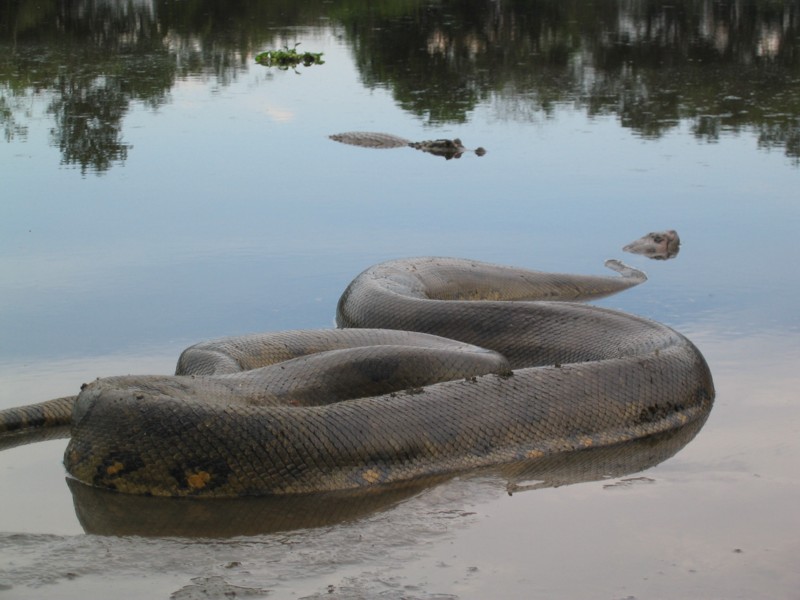 19.04.06 Los Llanos - Anaconda wird freigelassen, die Kaimane lauern schon ;-)