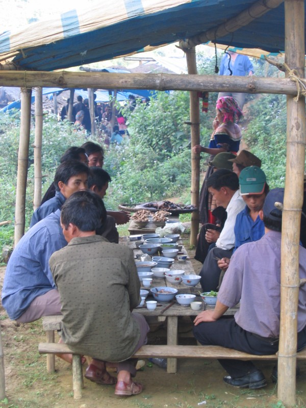 An der chinesischen Grenze - Markt in Can Cau; Die Frauen besorgen die Einkäufe, die Männer stärken sich derweil